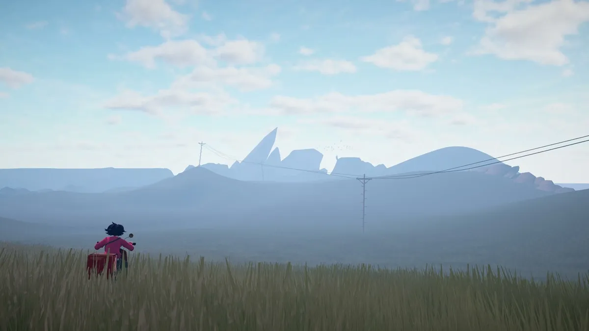 A estética é o ponto alto do jogo. Cenários amplos, vazios, liminais. Cores suaves, névoas, estradas que somem no horizonte.