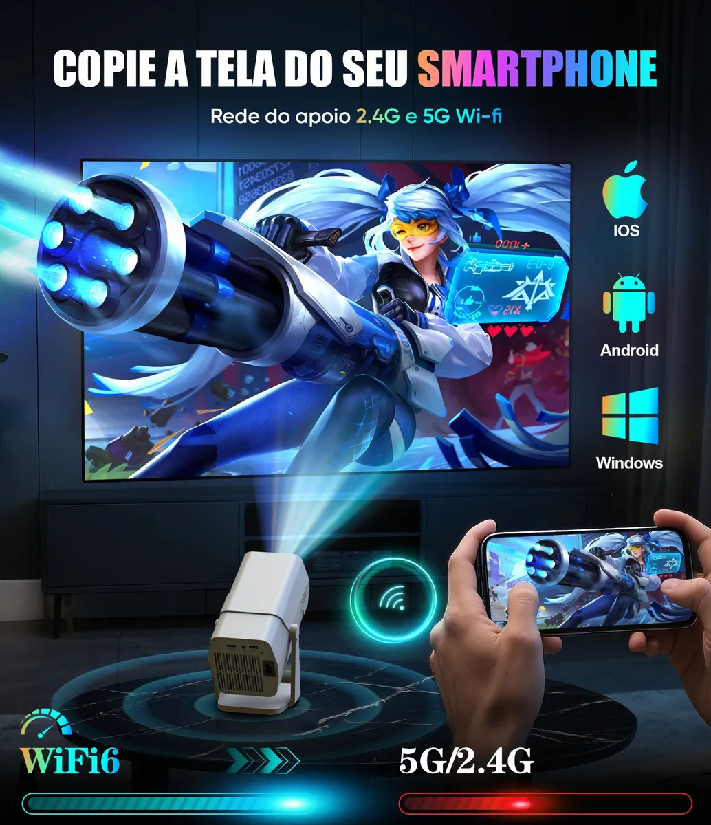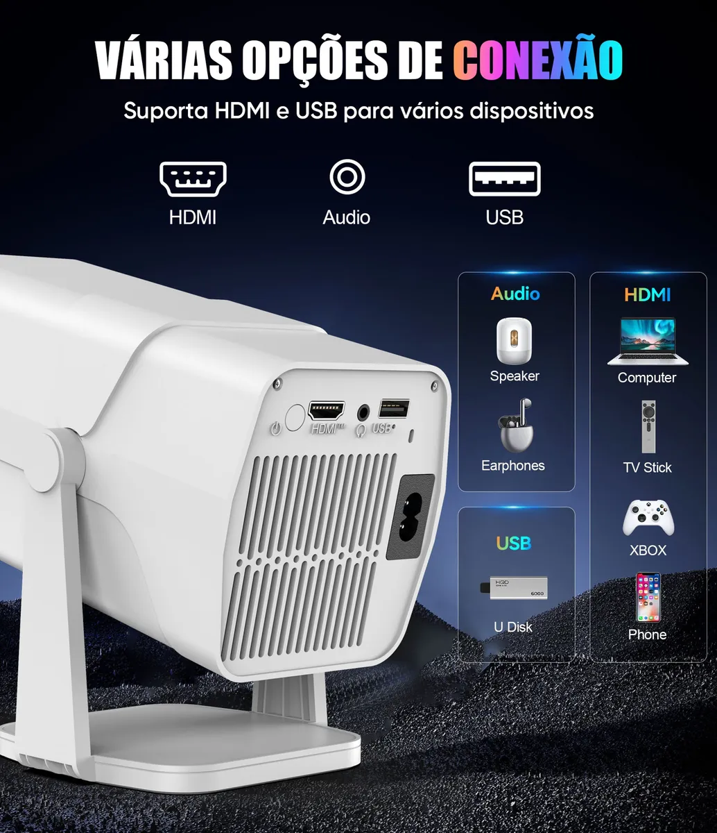 Desfrute de uma qualidade de imagem impressionante com resolução HD (1080p) e suporte a conteúdo 4K! Perfeito para assistir a filmes, jogar ou fazer apresentações com uma nitidez de tirar o fôlego.