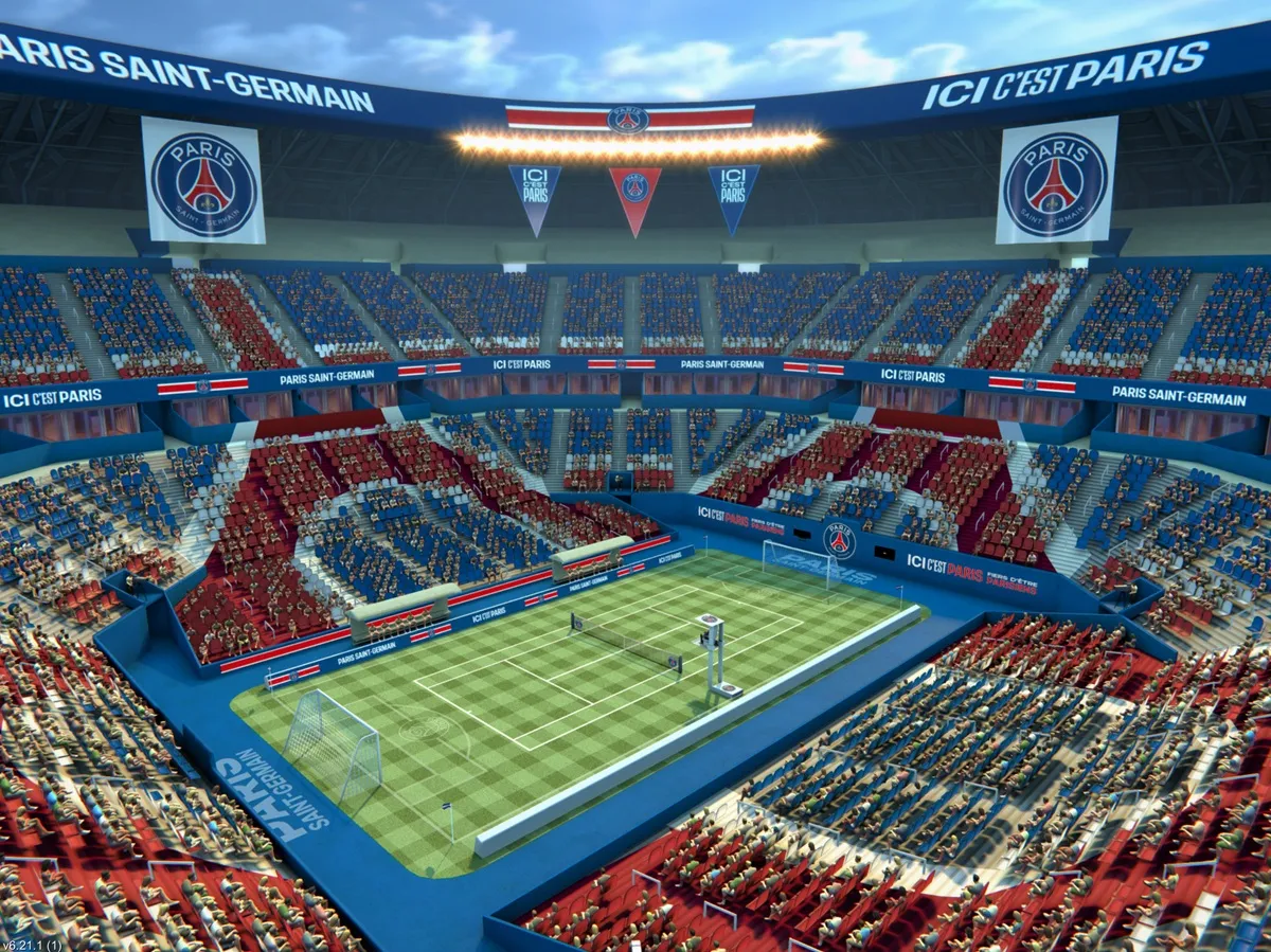 - Quadra personalizada: uma quadra de tênis inédita, inspirada e ambientada no Parc des Princes, com a identidade visual e o logo do PSG, proporcionando uma experiência imersiva aos jogadores.