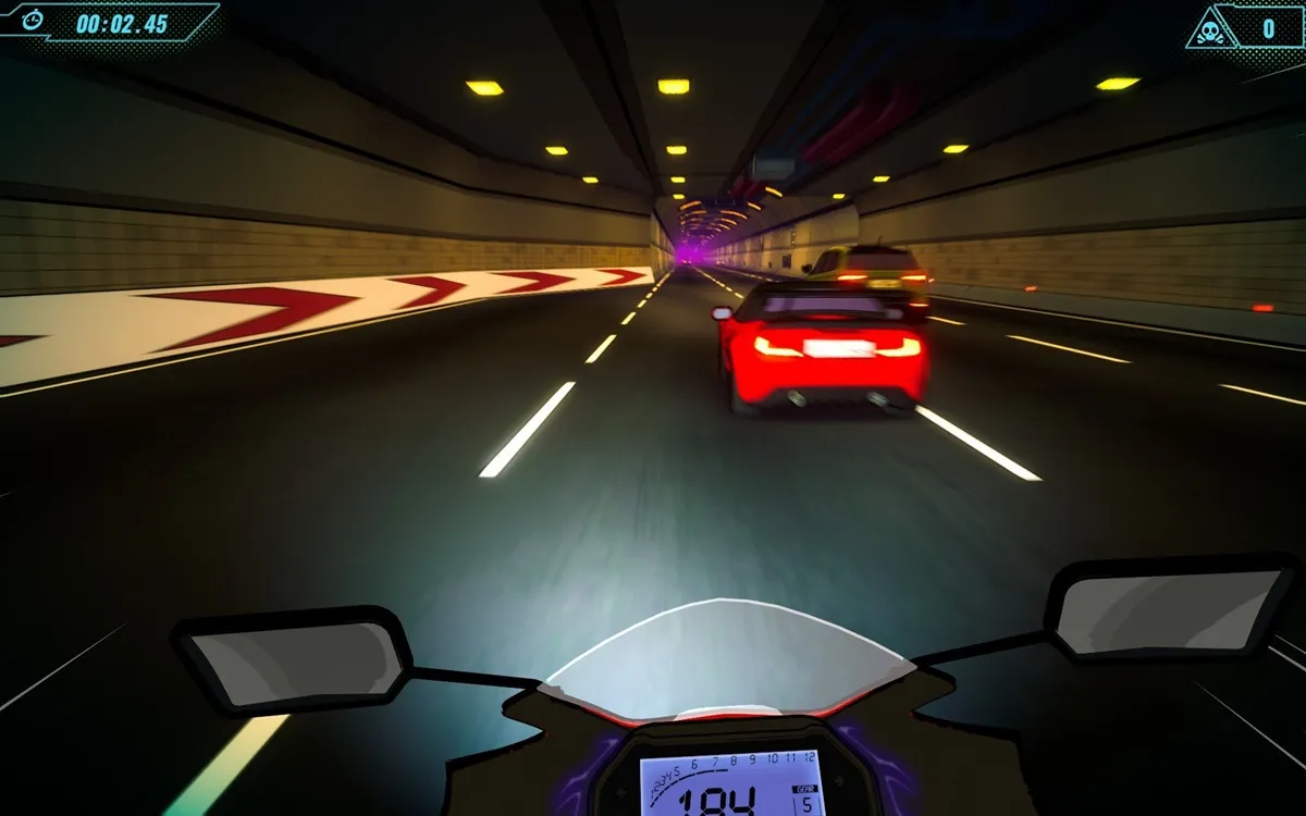 Empine a moto para aumentar sua velocidade enquanto você se esquiva e desvia do trânsito intenso. Reaja às mudanças rápidas na pista deslizando pelo asfalto e evitando barreiras por pouco. Mantenha a adrenalina a mil enquanto você se lança em rampas sobre as ruas congestionadas e iluminadas por neon de Tóquio. Os obstáculos em constante evolução, combinados com os itens colecionáveis e os objetivos de habilidade em cada nível, oferecem uma experiência rejogável que fará você voltar e ver a pista de uma maneira diferente a cada nova tentativa.