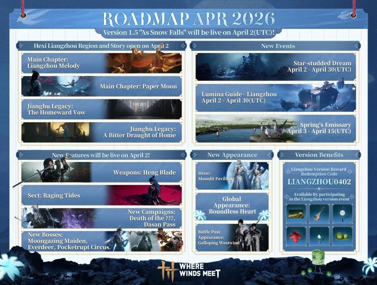 A vasta fronteira nevada de Liangzhou aguarda por você. Convidamos todos os viajantes a adentrarem o Jianghu e iniciarem este novo capítulo.