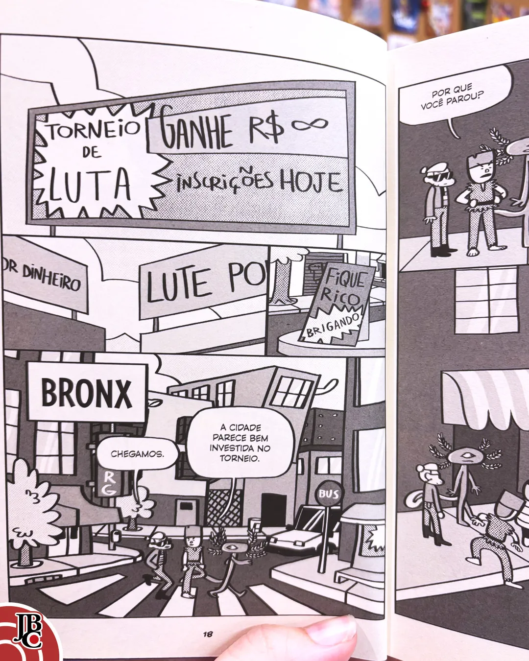 Recentemente nos tornamos Parceiros Oficiais da JBC em 2026, com isto, a editora nos enviou um “kit de boas-vindas” com diversos produtos, entre eles o Volume 1 da HQ brasileira HQ de Briga, de autoria de Silva João, um quadrinista paulista que já foi premiado inclusive no famoso Troféu HQMix. HQ de Briga traz uma história muito bem humorada, com uma visão tupiniquim (no melhor da palavra!) sobre os clichês dos filmes de luta/ação americanos dos anos 80 e 90.