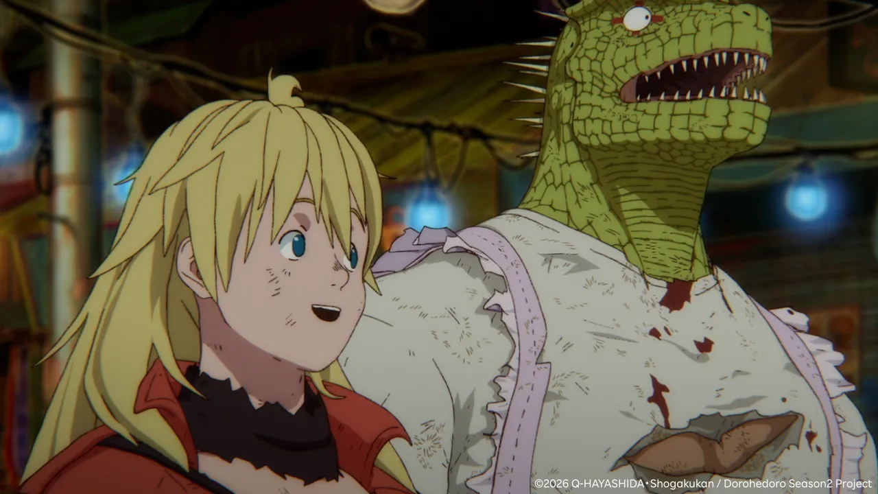 A tão aguardada segunda temporada de Dorohedoro foi oficialmente confirmada para este outono. Um novo pôster promocional, criado por Tomohiro Kishi, acompanhou o anúncio, destacando a equipe de produção atualizada. O Studio MAPPA permanece no comando, com Yuichiro Hayashi retornando como diretor, Hiroshi Seko cuidando da composição da série e (K)NoW_NAME mais uma vez responsável pela trilha sonora. A adaptação continua a dar vida ao mangá de fantasia sombria de Q Hayashida, acompanhando o mundo cru e surreal de Caiman e Nikaido enquanto enfrentam feiticeiros, maldições e batalhas caóticas.