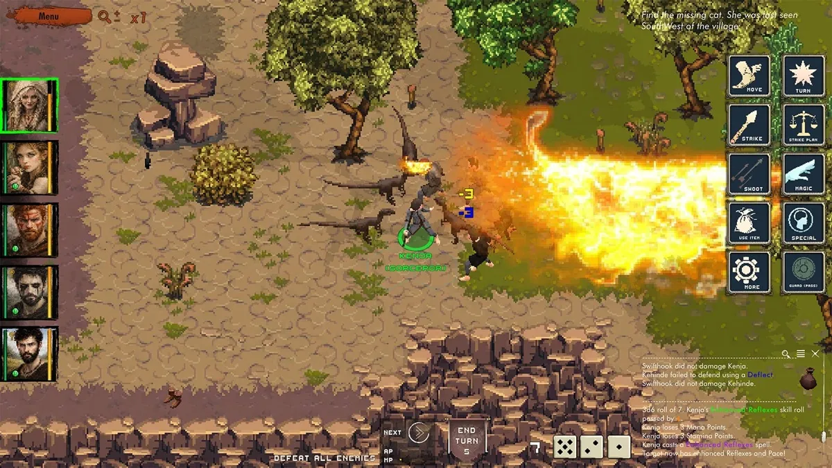 Combinando o gameplay clássico de RPGs táticos com um design sistêmico profundo, Scourge of the Reptiles coloca forte ênfase em posicionamento, estratégia e nas escolhas do jogador. Os jogadores comandarão um grupo de guerreiros, feiticeiros e companheiros dinossauros, explorando um mundo onde cada encontro pode ser abordado de múltiplas formas: por meio de combate, astúcia ou preparação cuidadosa.
