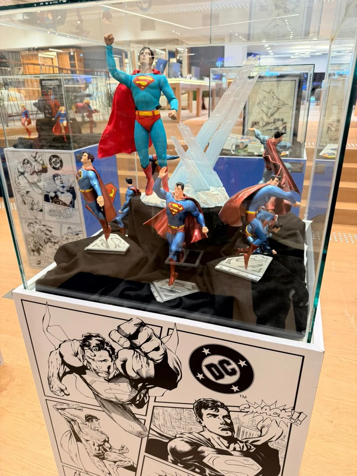 Entre os destaques estão ambientes temáticos e oportunidades para fotos, como uma cabine telefônica inspirada na icônica transformação de Clark Kent, um portal visual inspirado nos quadrinhos do personagem e uma estátua oficial do Superman ao lado de Krypto em sua versão mais recente, apresentada no primeiro filme do novo DCU sob direção de James Gunn. O espaço foi concebido para estimular a interação do público e a criação de conteúdo para redes sociais.